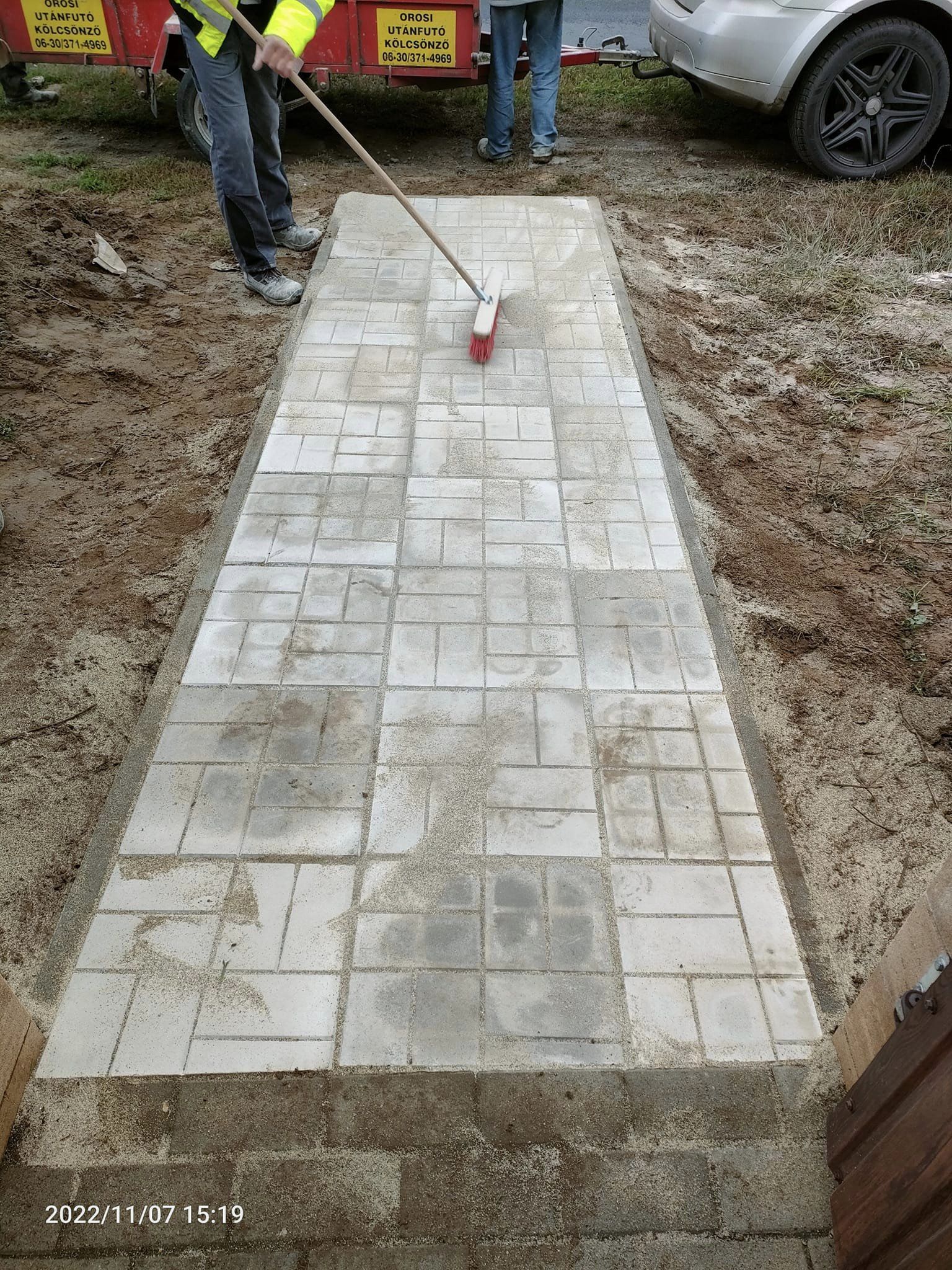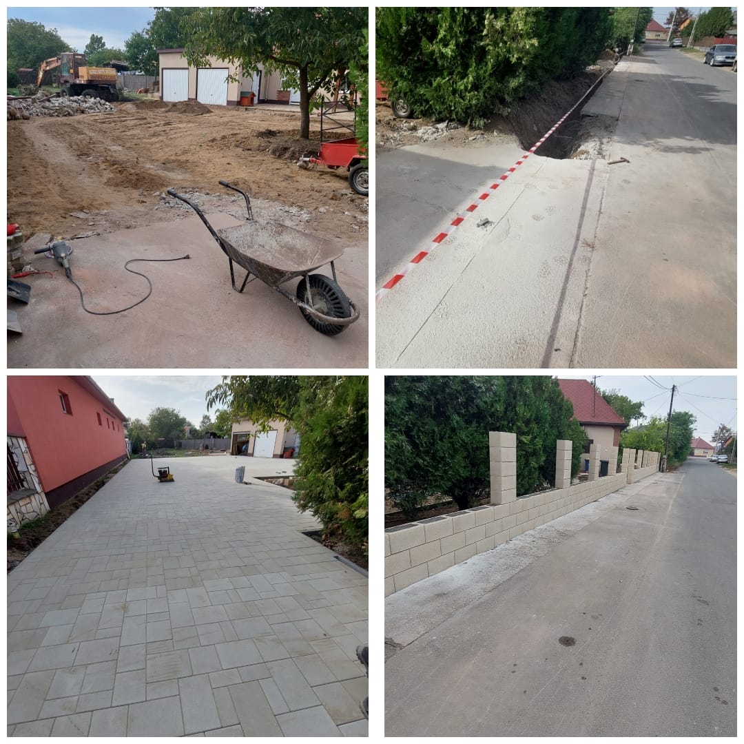 Térkövezés, kerítés, garázs